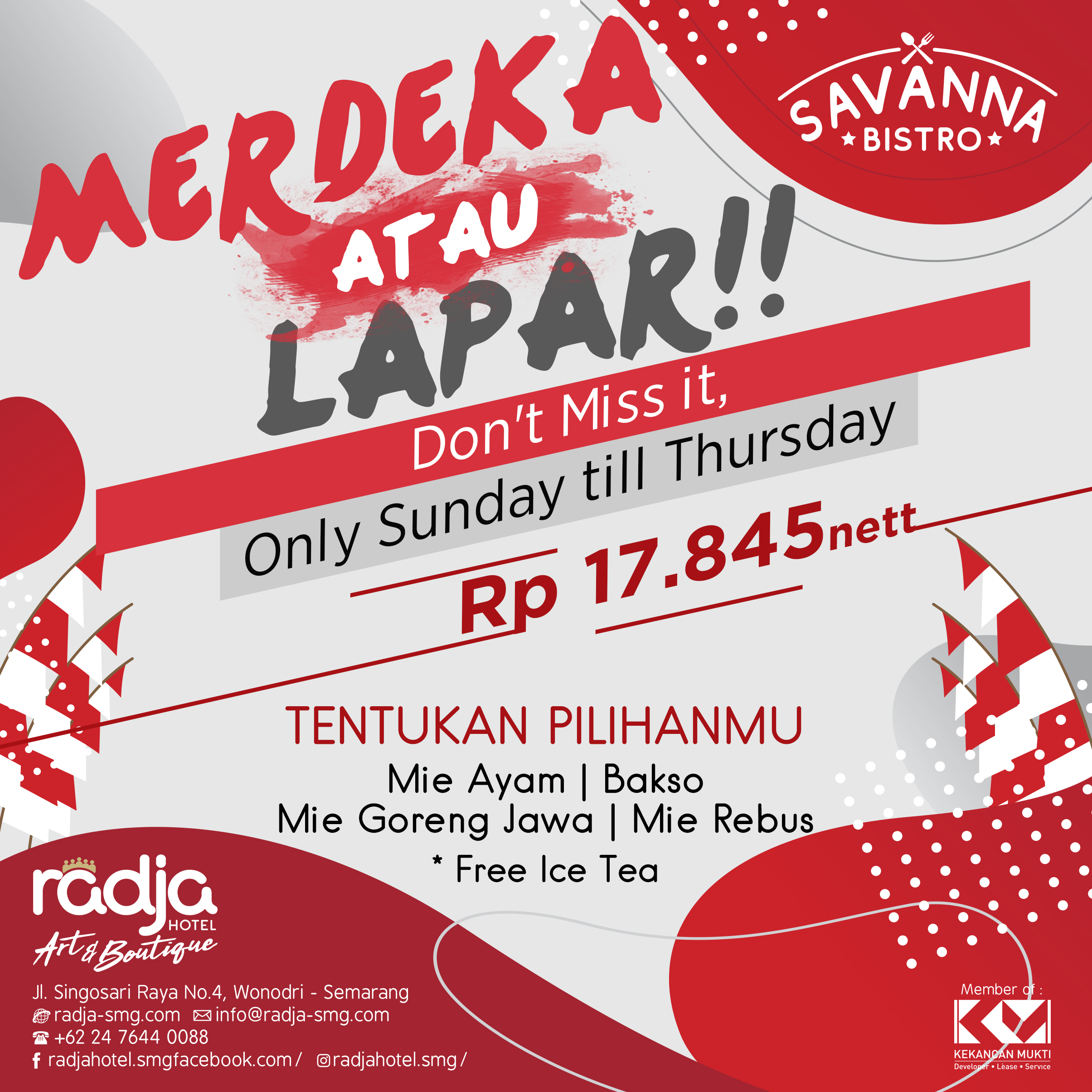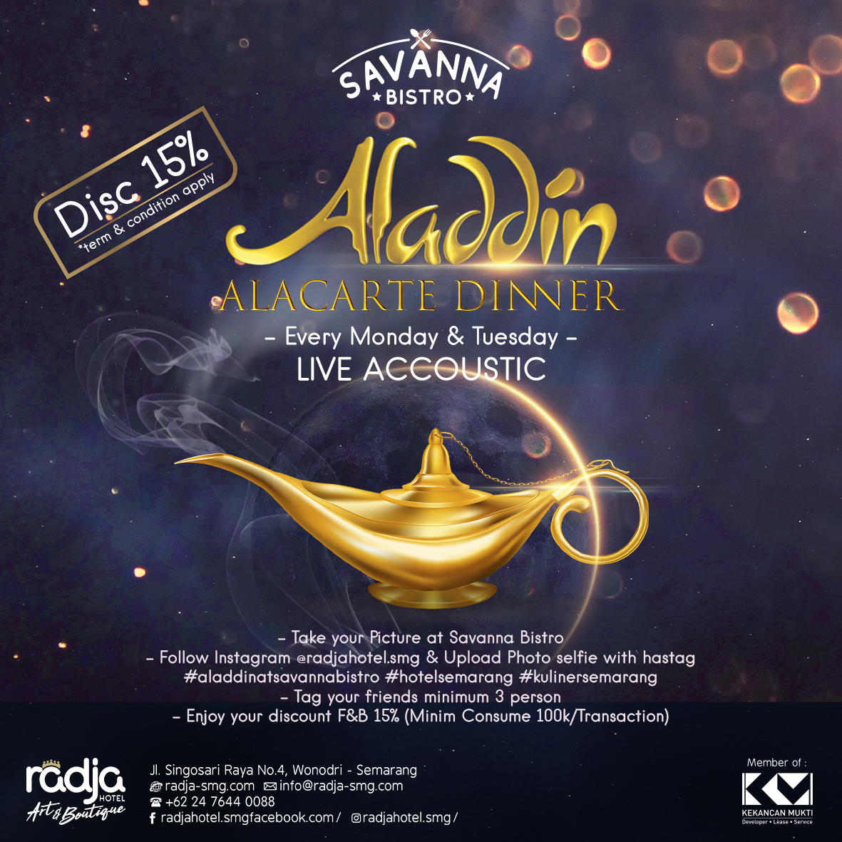 Diskon 15%, every Monday and Tuesday. Take your picture at Savanna Bistro.