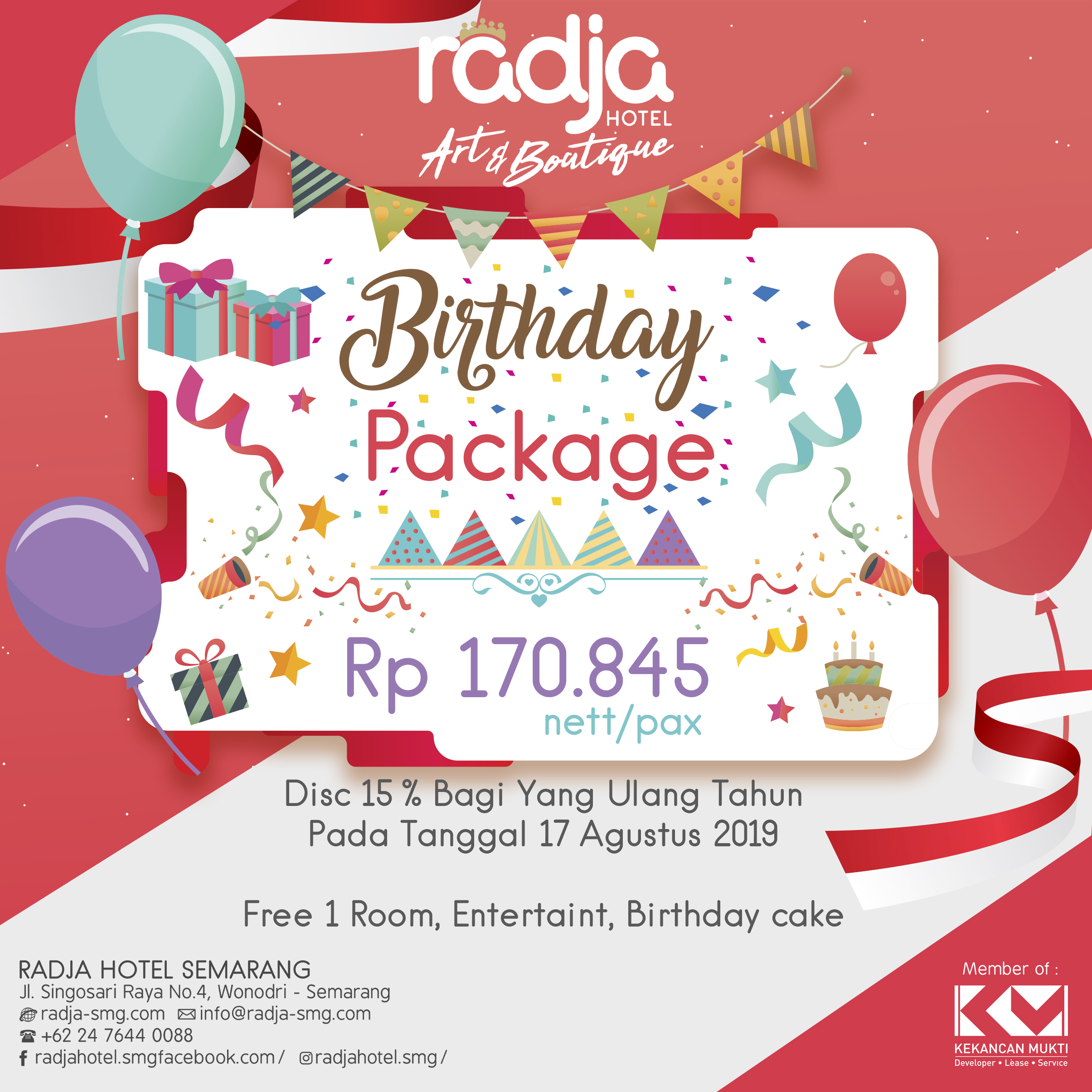 Diskon 15% untuk kamu-kamu yang berulang tahun di tanggal 17 Agustus 2019! Free 1 room, entertaint, Birthday Cake! Yayy!!